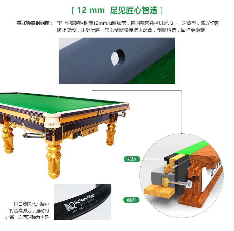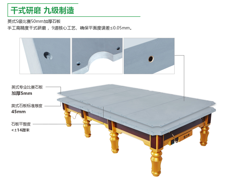 石板:英式斯诺克国际职业比赛专用S级干磨石板,9道研磨工艺